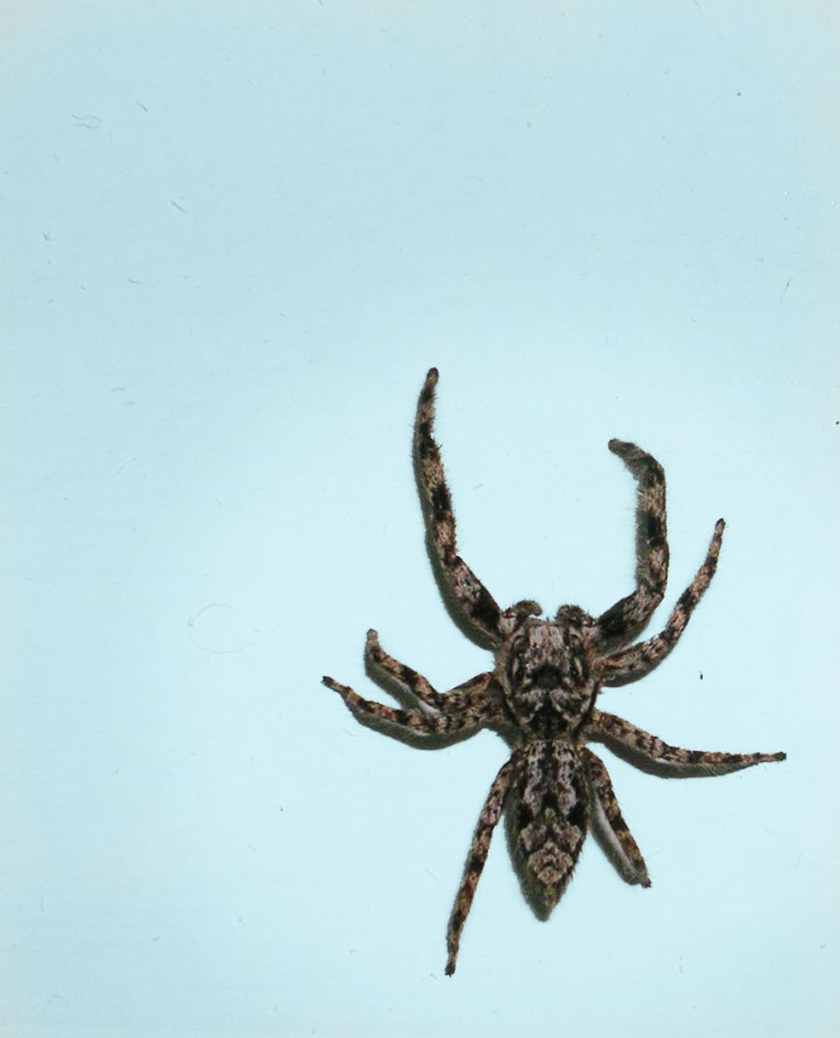 Anyway, a timeline: I was in my room, sitting on my bed, and saw the familiar dark blot on my wall. I quickly ran downstairs and grabbed a camera, went up and took the picture, then brought the camera downstairs to show my grandparents. My grandfather does not follow the same rule; I think he rather likes spiders. Inside or out, they are allowed to live. So I said to him, “If you want it to live, you have to save it. Otherwise, I’m killing it.”