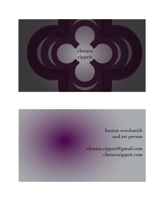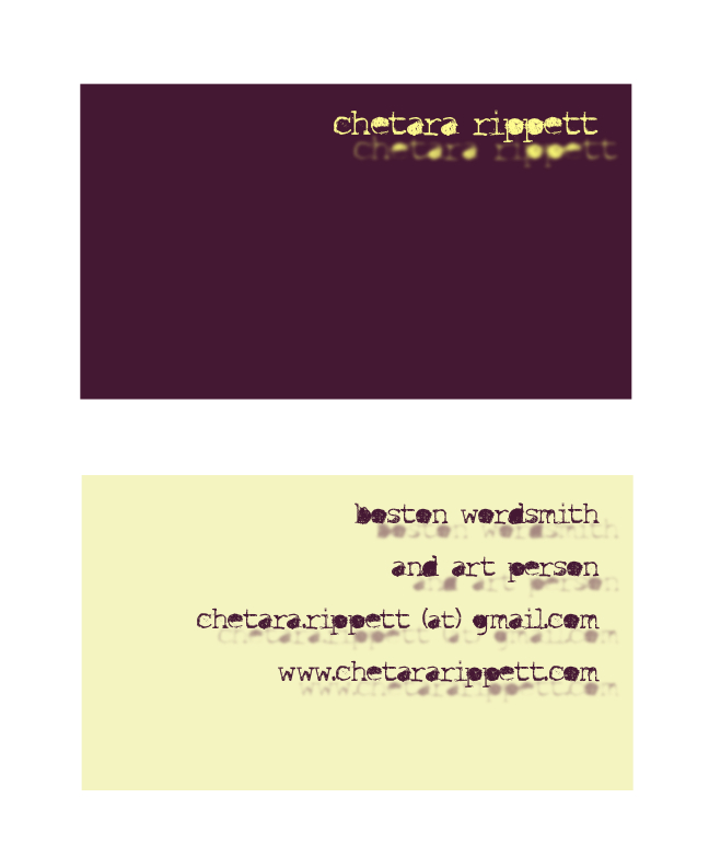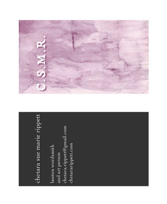 This is my favorite so far. I don’t love the back, but I like the idea of incorporating watercolor. I would paint one side of the card with actual paint, and maybe use stamps for the text instead of printing. Could be pretty nifty.