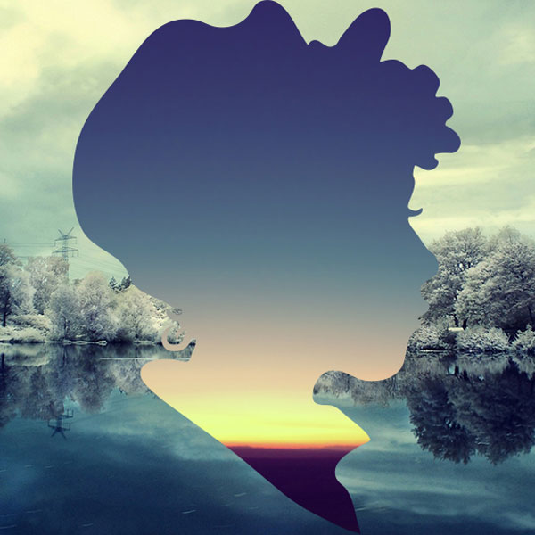 The artist, Aritz Bermudez of Creative Farm, overlaps two complementary landscapes and a trace outline of a young boy or girl. Result: